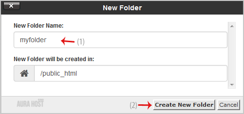 5. In the "New Folder Name" field enter your folder name like "myfolder" (without the quotes). Then click on the "Create New Folder" button.