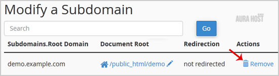 3. Under the "Modify a Subdomain" list you can see a list of subdomains.