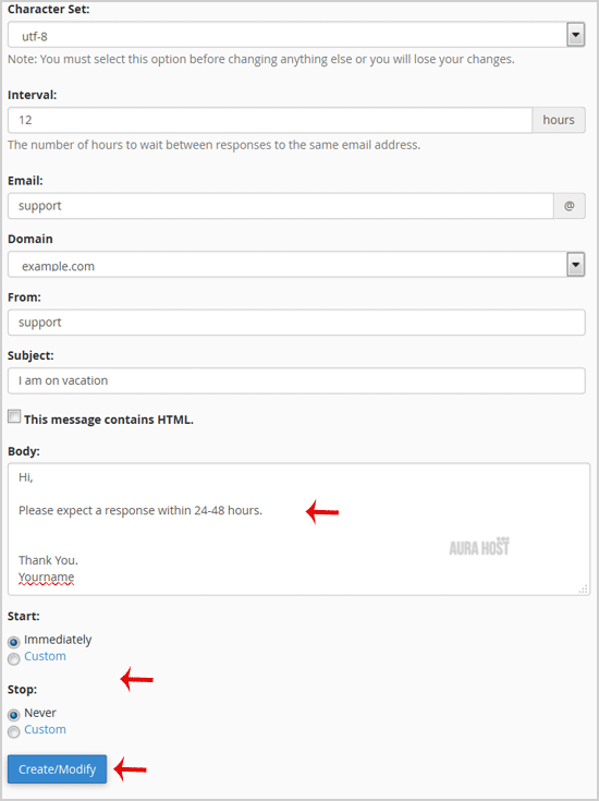4. In the Interval field, specify the number of hours you wish the autoresponder to wait between responses to the same e-mail address.