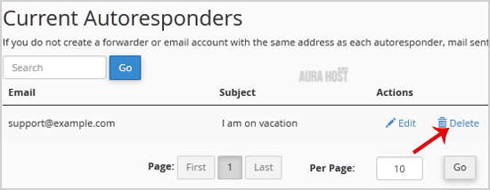 3. Next to autoresponder, click on "Delete" Autoresponder.
