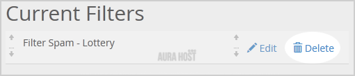 2. Under "Current Filters" you can see all of your existing filters. Click on "Delete" next to the appropriate filter name.