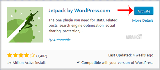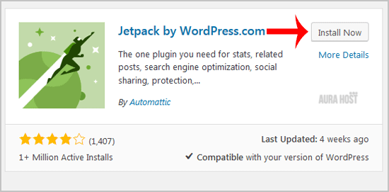 4. The available plugins matching the keyword "Jetpack" will appear. Click on the "Install" button which appear next to the plugin"s name.