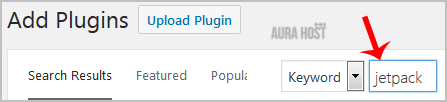 3. In the "Search Plugin" box, enter the name of the plugin you wish to install, such as "Jetpack", and press enter.