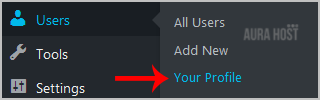 2. Under the dashboard menu, hover your mouse over "Users" and then click on "Your Profile".