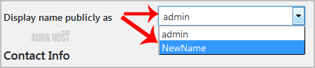 4. In the option "Display name publicly as", choose your newly added nickname from the drop-down menu.